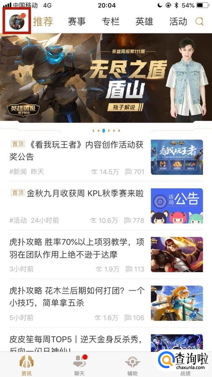 然后点击屏幕左上方的个人头像,如下图所示。