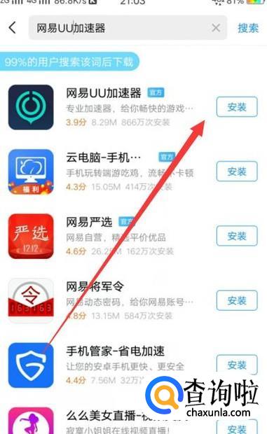 进入之后,搜索“网易UU加速器”,将其下载,如图所示。