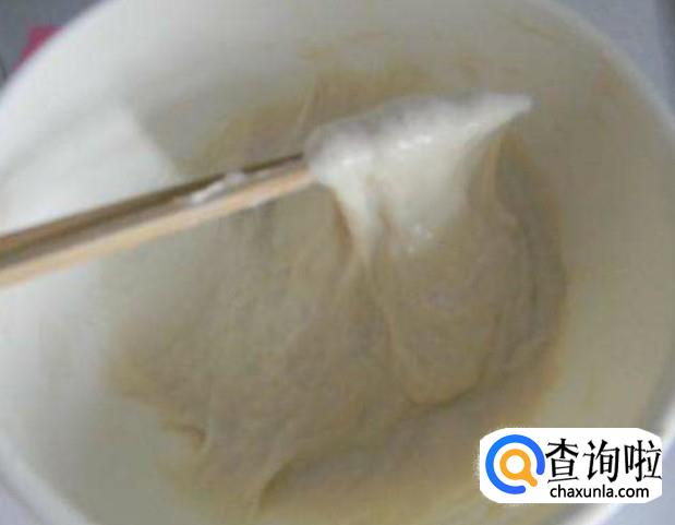 把面粉倒入在盆子里,然后加入清水,把面粉和成稍稠的面糊,然后加入白糖在里面
