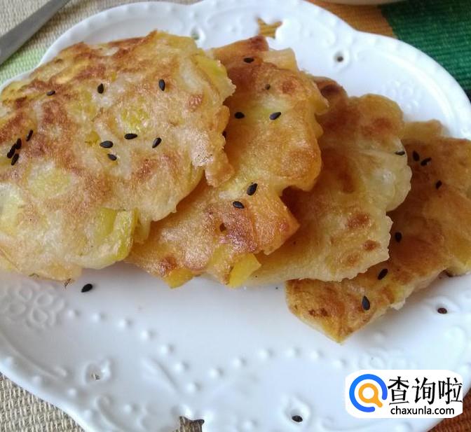 在锅里倒油,等油热了之后就开始用勺子舀一小勺红薯粒面糊,然后用锅铲压平,煎黄就可以起锅了