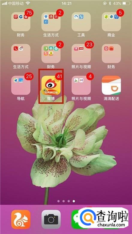首先在我们的手机桌面上找到微博并点击它,如下图所示。