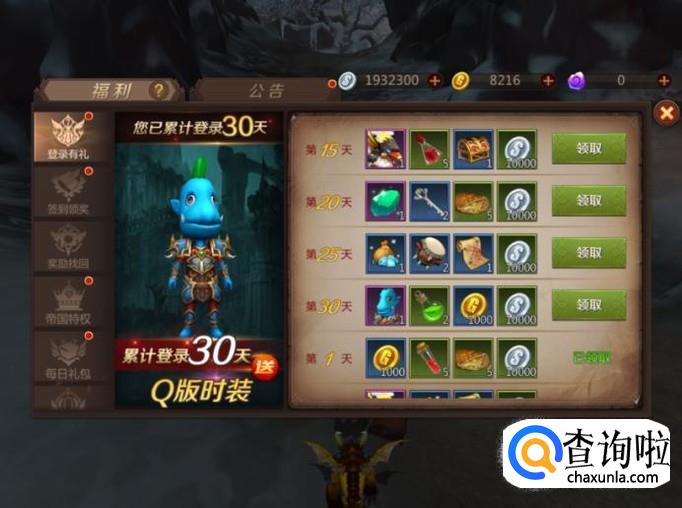 游戏中玩家每天可以签到一次,通过签到可以获得银币。