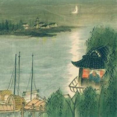 《题金陵渡》是唐代诗人张祜所作的一首客愁杰作,入选《唐诗三百首》。此诗前两句交代诗人夜宿的地点,点出诗人的心情;后两句实写长江金陵渡口美好的夜景,借此衬托出诗人孤独落寞的羁旅情怀。全诗紧扣江(落潮、夜江)、月(落月、斜月)、灯火(渔火、星火)等景,以一“愁”字贯穿全篇,诗旨甚明,神韵悠远,在艺术结构方面更是独具匠心。