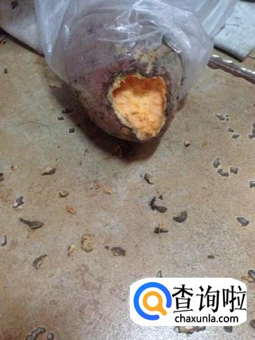 老鼠喜欢偷吃东西,藏在家里的老鼠经常会出来找吃的,有时候食物太大他们搬不动,就会在外面食用,吃不完就会留下。像图中一样会留下齿印