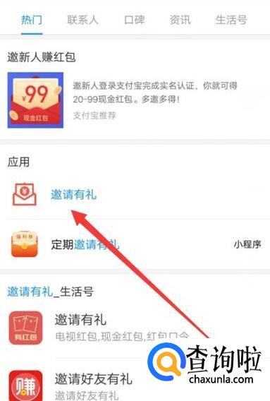 进入之后,点击图示位置搜索“邀请有礼”,如图所示。