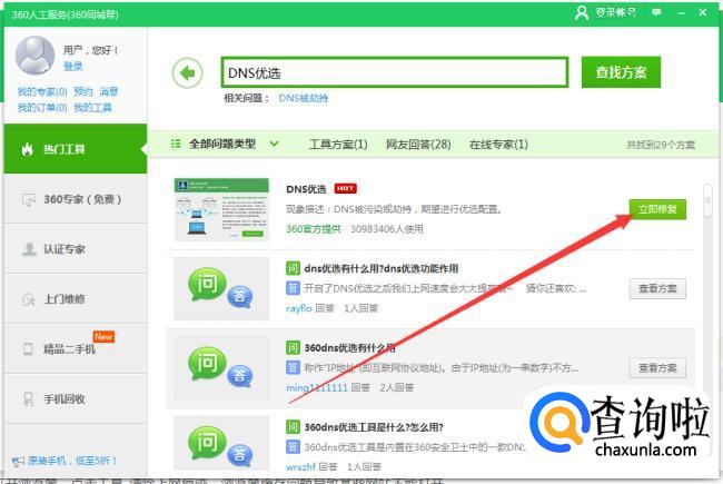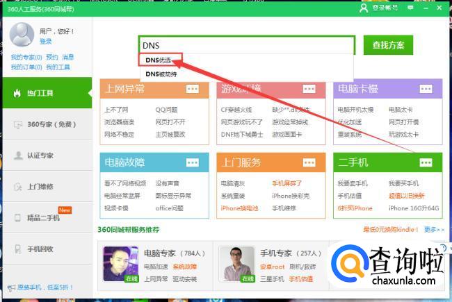 输入DNS这时会弹出下拉框,选择框里的“DNS优选”,解决网页打不开的问题。
