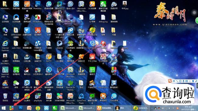 唤醒我们的电脑,在电脑左下方找到Windows按钮,鼠标点击进入。