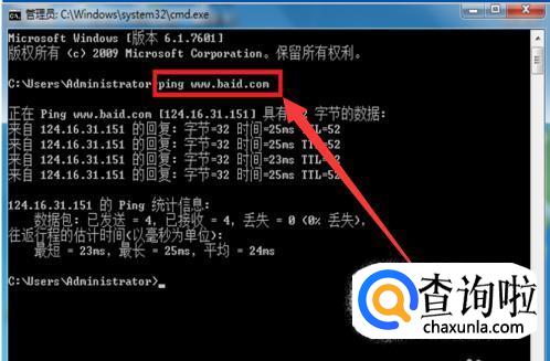 点击进入了管理员界面了,在界面的第三行代码处填写ping+空格+网站,按ENTER(回车键),查看该网站网络是否通畅。是否网络的问题。如果不是可能就是浏览器等其他问题。