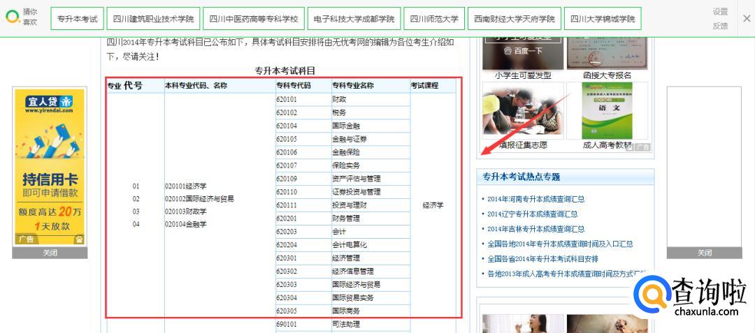 就可以看到自己所在省的专升本科目。