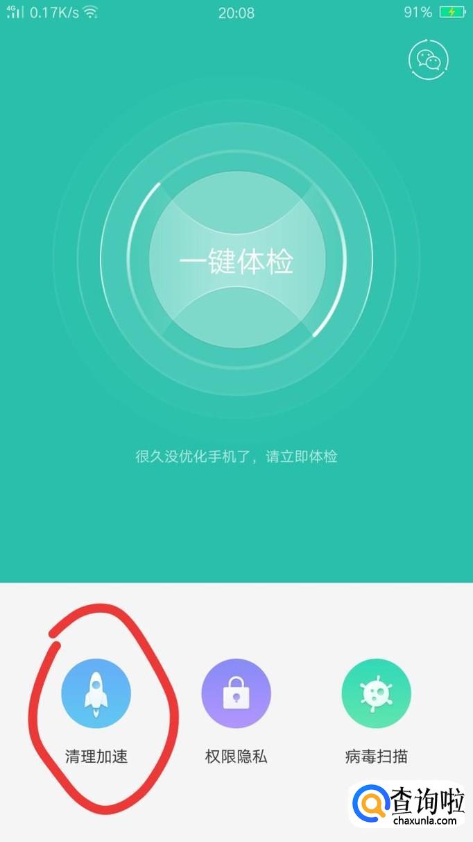 点开手机管家,界面如图所示,需要清理手机垃圾时可以点击“清理加速”