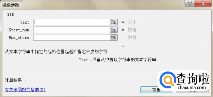 在弹出的如下对话框中,可以选择三个参数值。第一参数即为提取文本或数据的原数据,必须是一个单元格;第二参数是提取文本或数据的起始位数,1代表从第1位开始提取;第三参数是提取文本或数据的位数,1代表提取1位。。