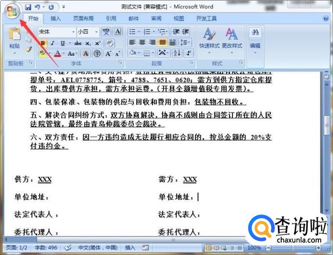 我们打开一个需要加密的Word文档,再点击右上方office按钮