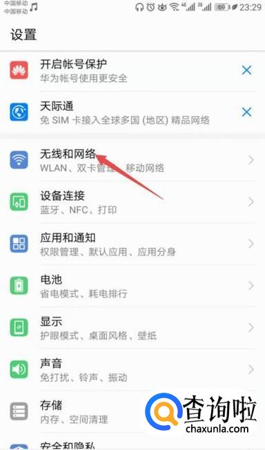 弹出的界面,我们点击无线和网络;