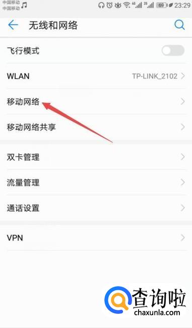 弹出的界面,我们点击移动网络;