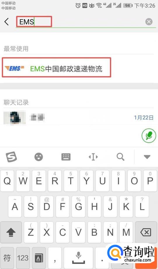 弹出的界面,我们输入EMS,弹出的界面,我们点击EMS中国邮政速递物流;