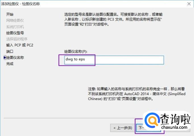 弹出的界面,我们将绘图仪名称改为:dwg to eps;