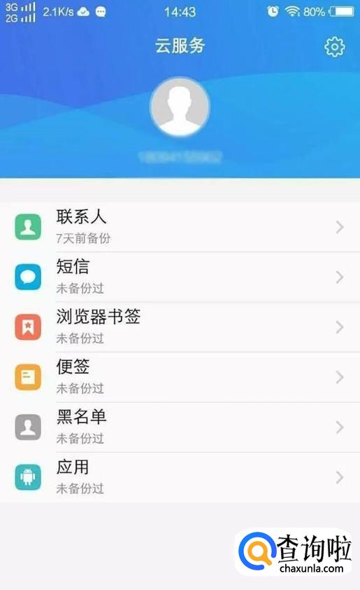打开云服务-点击联系人-选择备份