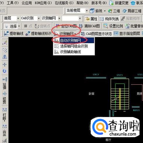 最后我们我们点击识别轴网,选择下方的自动识别轴网即可。