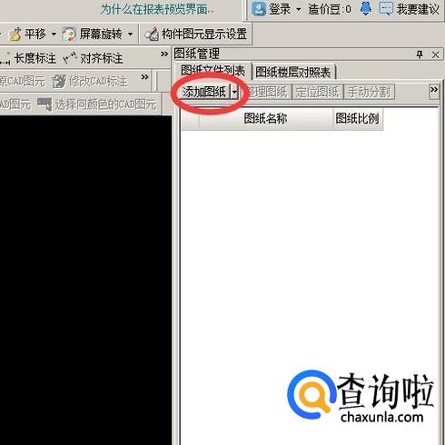 然后我们在图纸管理中添加一张cad图纸,点击下方的添加图纸。