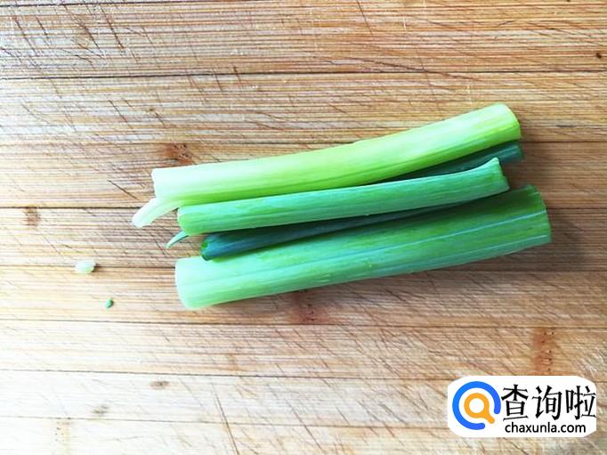 把洗净的葱叶切成自己喜欢的形状备用。这里我会切成小段。