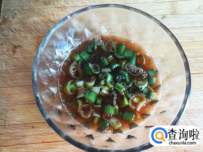 把切好的葱叶和香油一同加入搅拌放置5-10分钟。