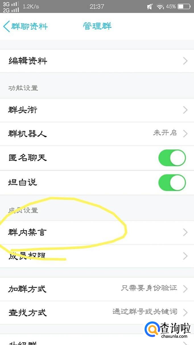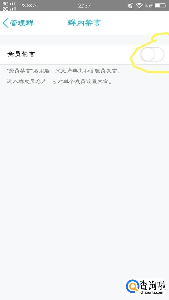 最后,大家在其中找到“群内禁言”,并点击旁边的开关符号,便能取消和开启群禁言