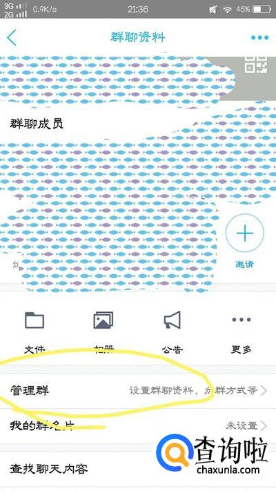紧接着,大家看到屏幕中间的“管理群聊”并点击进入