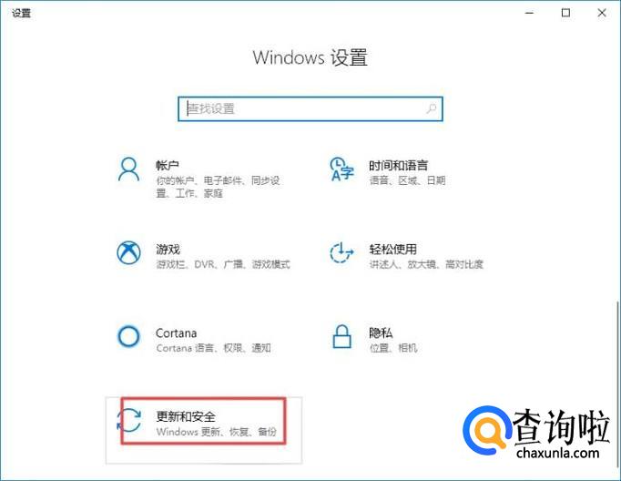 进入设置后,我们点击更新和安全;