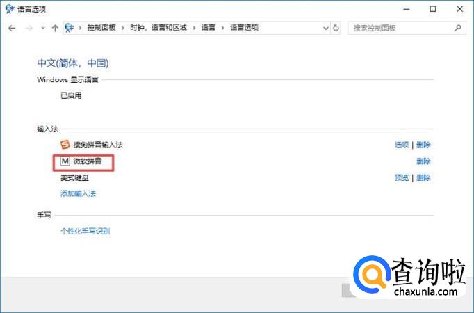 弹出的界面,我们点击微软拼音,之后点击添加;