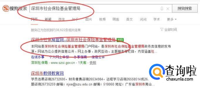 在浏览器中输入【深圳市社会保险基金管理局】,点击具有官网标志的链接,如下图所示:
