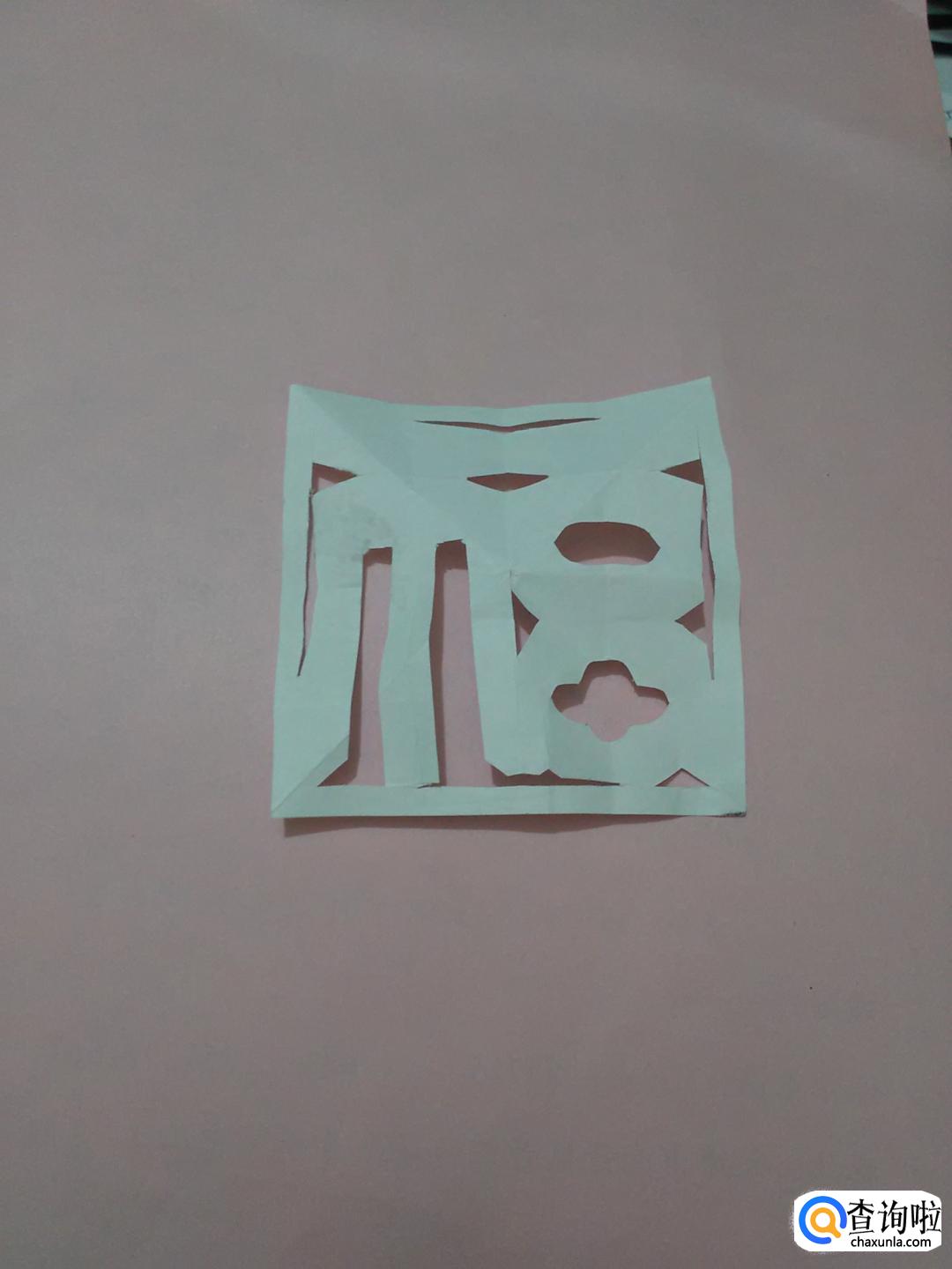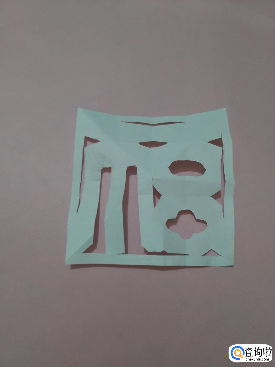 把彩纸打开,一个简单的福字窗花就剪完了。