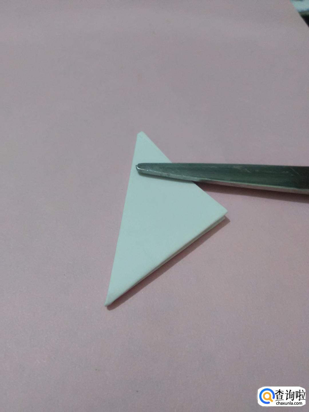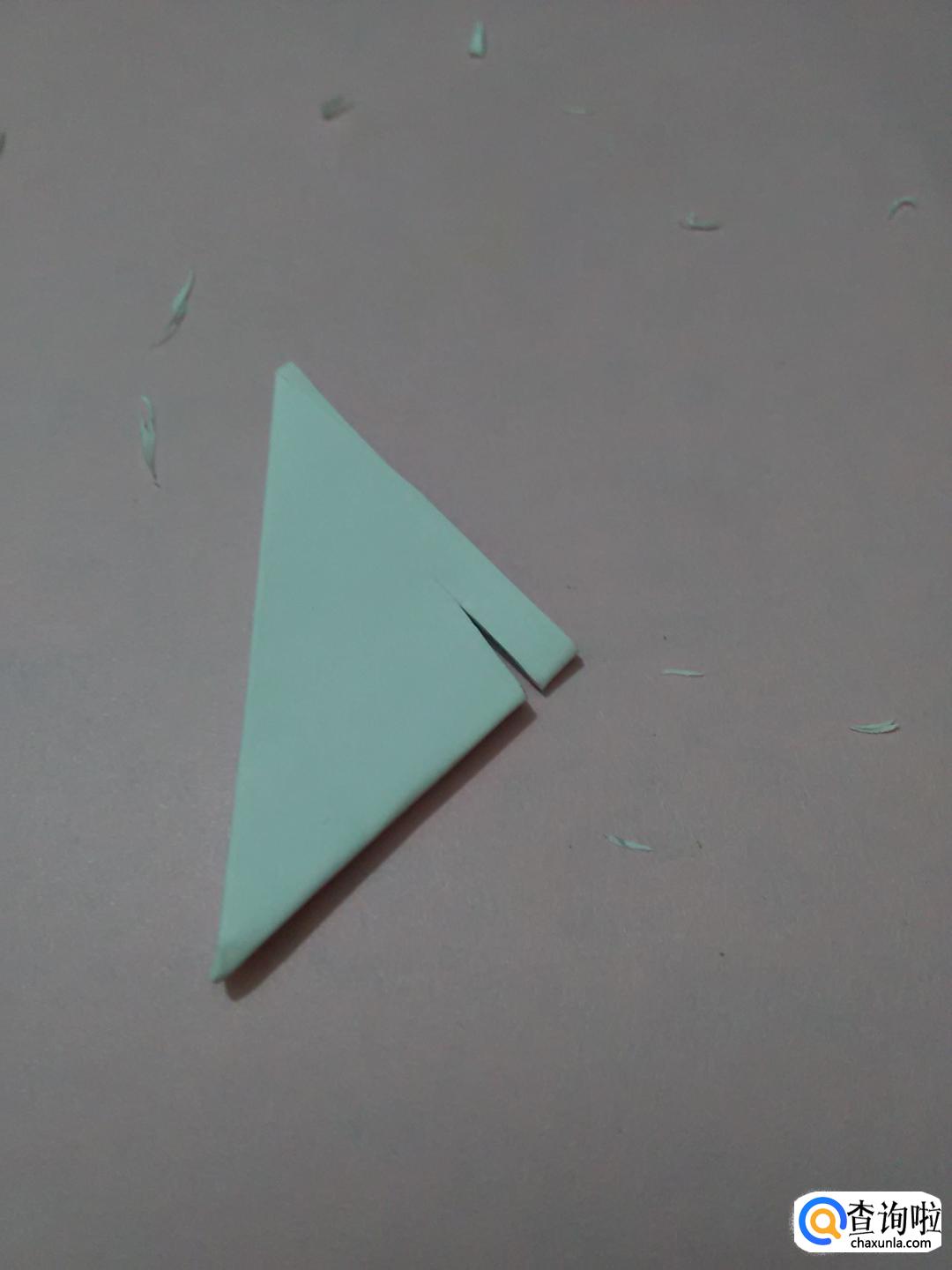 用剪刀在三角形右侧角处剪掉一个细细的三角形。