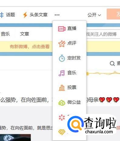 紧接着,我们在发布微博的页面点击三个点的图标,再点击定时发