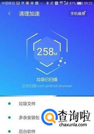 然后软件就会自动对手机内产生的垃圾文件进行扫描。