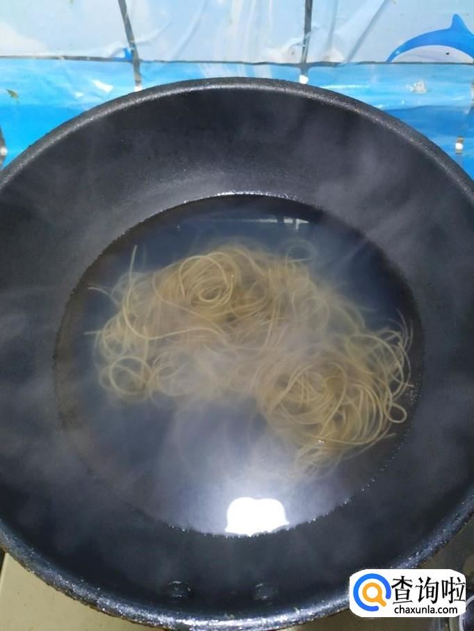 将大白菜倒入锅中,翻炒均匀,炒至白菜变软之后,将粉条倒入锅中,翻炒均匀。