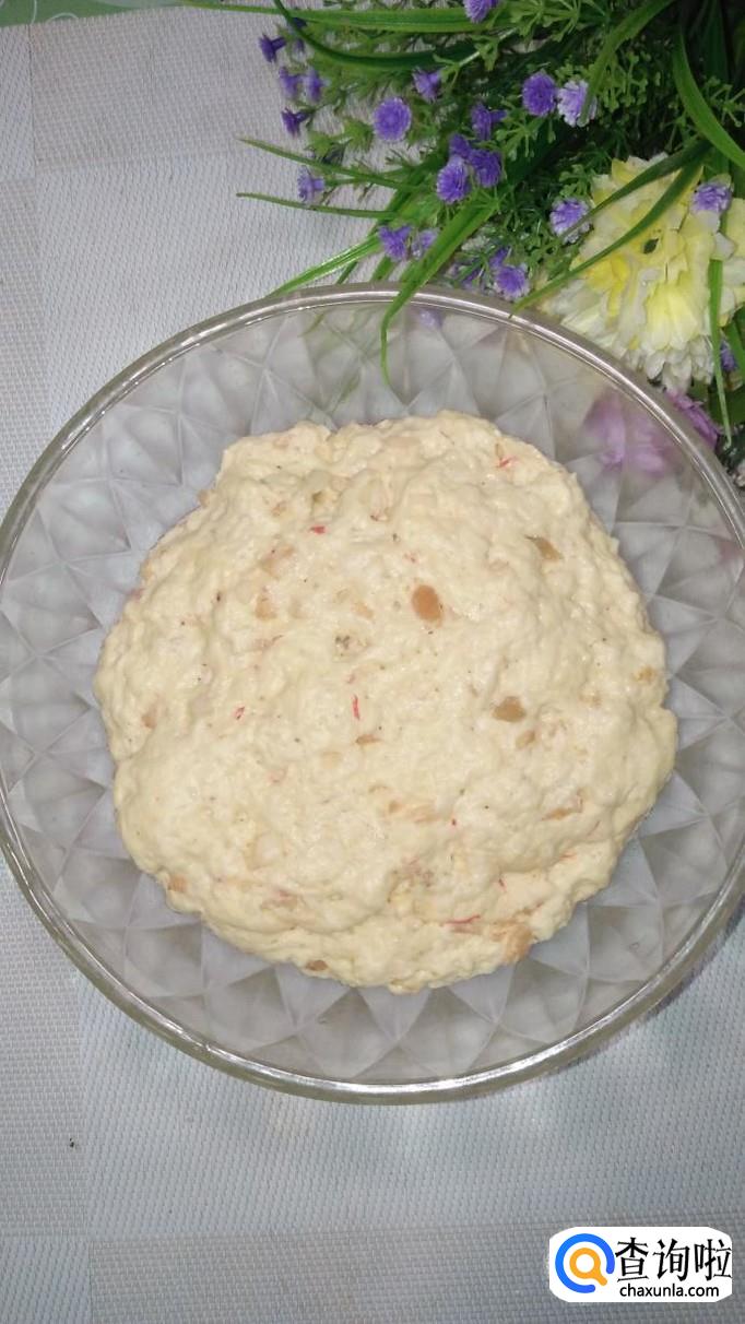 不用加水,揉成面团。其实是用牛奶来代替水,和成面团。可以提前将容器中抹些油,然后再将面团放进去,这样做好的发糕,不容易粘碗。