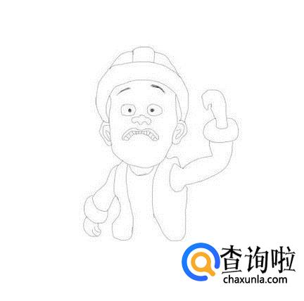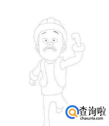 在马甲的两侧画出光头强的两只胳膊及手部,如图所示: