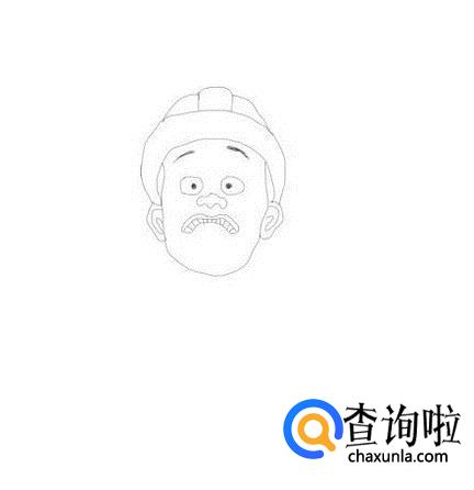 再在面部上画出光头强的眉毛,然后再画出光头强的眼睛,然后在眼睛的下面画出光头强的鼻子和嘴巴,如图所示: