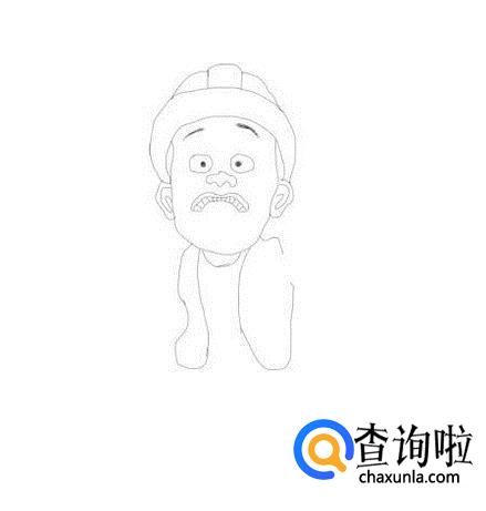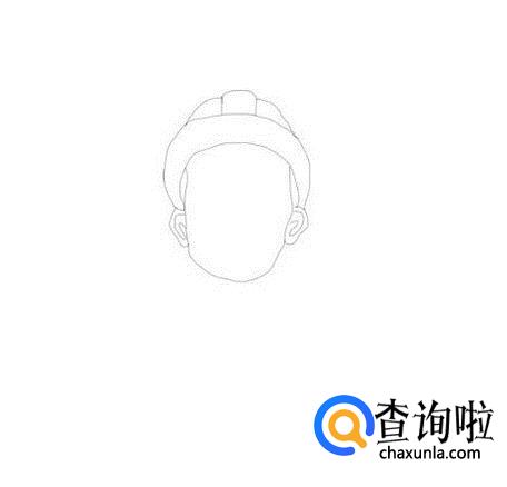 在帽子的下面画出光头强的面部,并在面部上画出光头强的两只耳朵,如图所示: