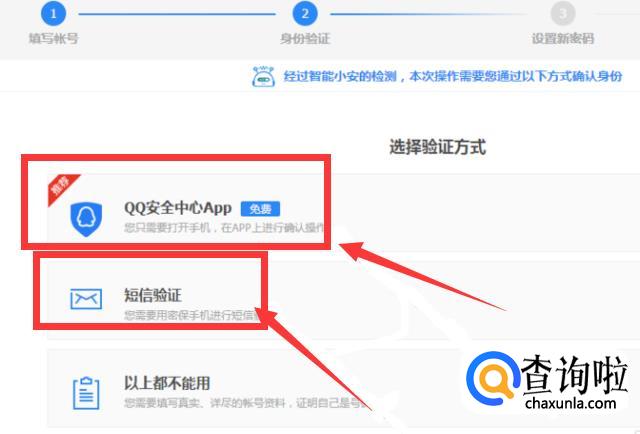 完成后,系统会自动根据当前网络状态,给出对应的验证码方式。验证方法有QQ安全中心APP、短信验证等,但是最方便快捷的还是短信验证,只要你的QQ绑定的手机号码是你还在用的手机号码,那么一切都非常简单了。