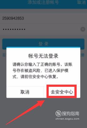然后你就可以用手机登录QQ,当你进入QQ时,系统会提示账号无法登录,这是因为你已经将QQ密码换掉了,所以需要用新的密码再登录一下,点击【去安全中心】。