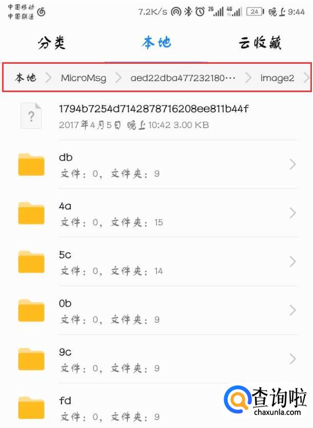 然后我们进入第一个文件夹,可以通过里面文件显示的时间来确定是不是刚刚发的照片的缓存。