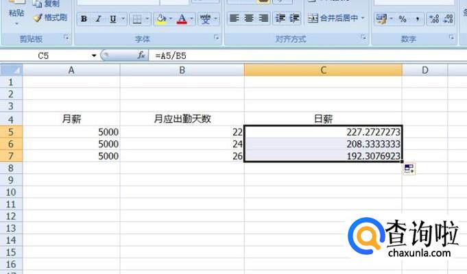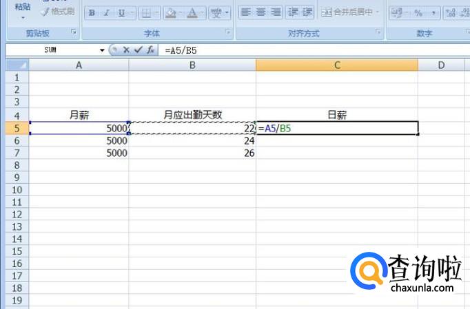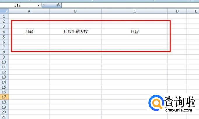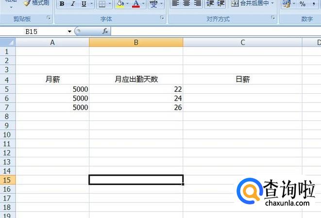 我们准备一个excel表格,表格里写上月薪、月应出勤天数、日薪这几个数据,我们分别来计算。