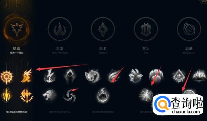 新版的符文有五大流派,分别是精密,坚决,启迪,主宰,和巫术,这五大流派根据自己的英雄属性进行选择。