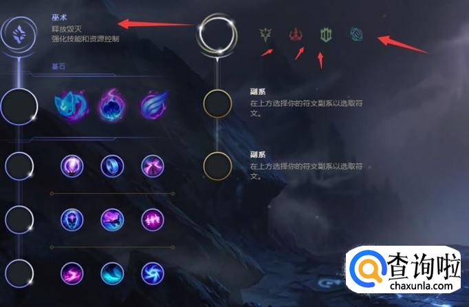 基石选择完毕剩下的就是辅助符文,辅助符文有九个,但是要在这九个中选择其中的三个进行搭配