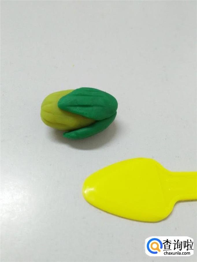 先用黄色搓一个椭圆形,当作玉米。