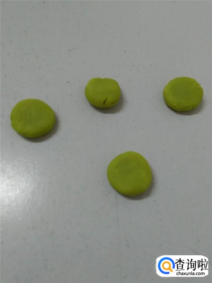 再用白色团四个小球,按扁,当作车轴。