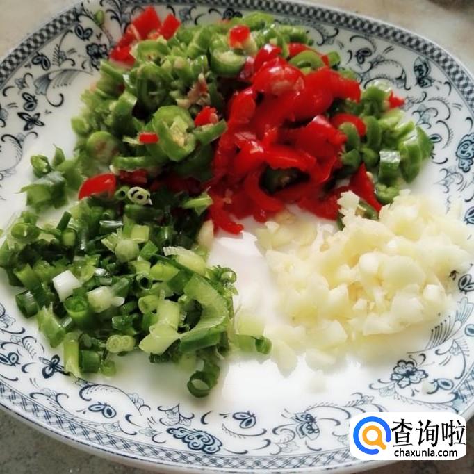 大杯蒜籽去皮切碎,青红辣椒去籽切碎,香葱也切碎备用,,