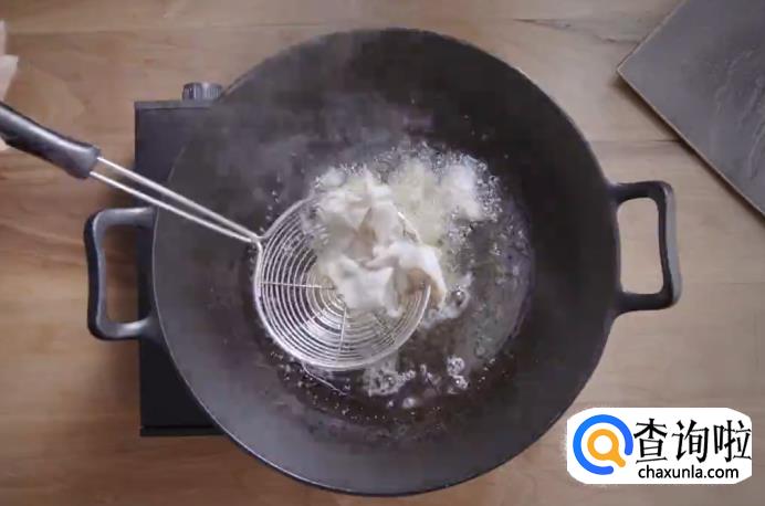 包馄饨:将馄饨馅放在馄饨皮中间,然后馄饨皮对折,把对折好的馄饨向内里卷成半圆形,再将两边的馄饨皮合在一起,按紧粘好就完成了。