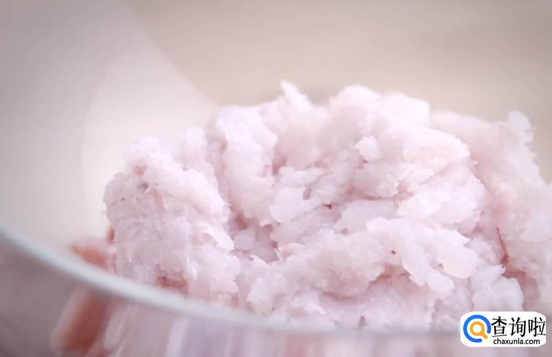 做馄饨馅:取一半鱼肉剁碎,剁碎后和猪肉糜混合;依次加盐、葱姜水、白胡椒粉、五香粉、糖、生抽、老抽、蛋液,顺时针搅拌均匀;再加一点淀粉、食用油继续搅拌,直到肉上筋。